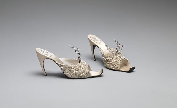人们对于高跟鞋的迷恋有时是狂热到难以想象。与其他的配饰相比,高跟鞋有着同衣服旗鼓相当的实用性;而与衣服相比,鞋子的造型,却是远离了人体的基本形态,另造出了一种新形式的足部廓形。而这样的廓形却又是受到人们热烈的追捧。Antonio Beradi设计的无跟鞋,都是需要造成一副“有跟”的假象;Jeremy Scott九十年代“Body modification”时装秀上的惊人之作——一根单纯用于绑在脚跟处的鞋跟——则是用极简单的形态展示了女人无论如何都要踮高几厘米的心态。