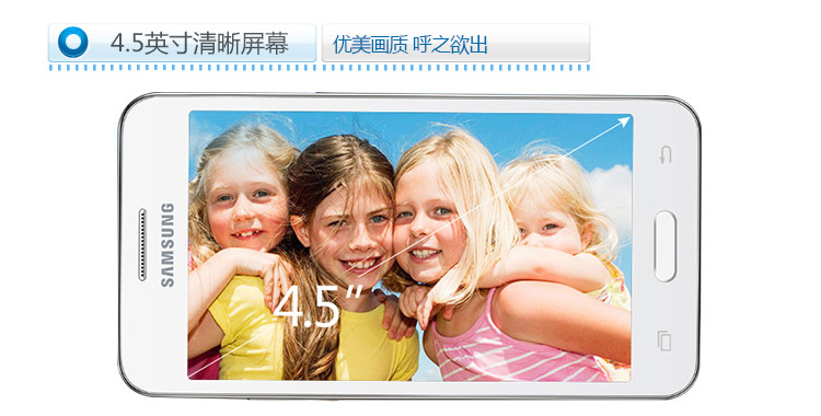 三星G3556D配置500万像素摄像头,清晰画质趣味拍摄。并有多种拍摄模式,适合不同场合的拍摄需要,让拍照更加智能更多趣味。三星G3556D配备4.5英寸屏幕,画质清晰视野开阔,优美画质呼之欲出,带来震撼视觉体验。