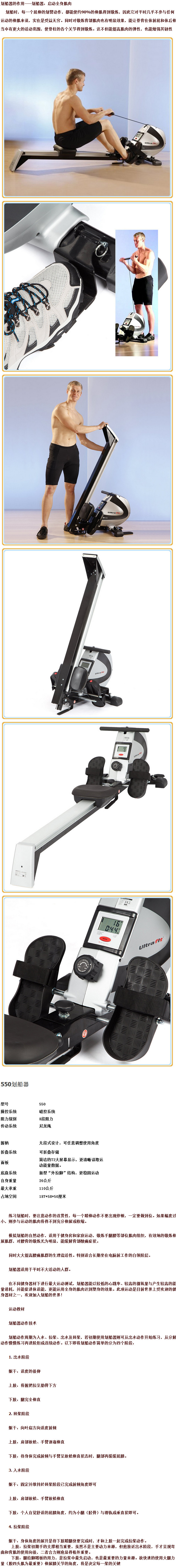 美国Ultrasport划船器T型坐姿划船机550 家用磁控健身器材折叠