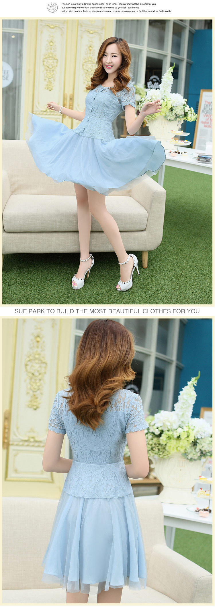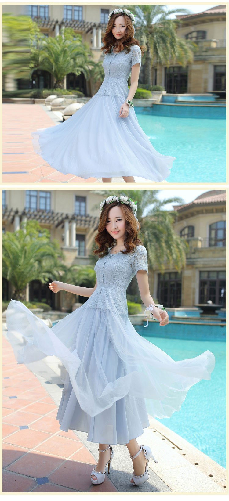 韩版女装时尚蕾丝雪纺长裙短裙欧根纱百褶裙沙滩裙连衣裙