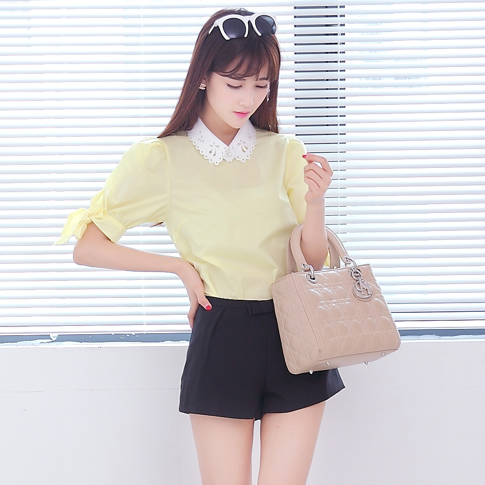 韩版蝴蝶结修身显瘦中腰雪纺短裤女 休闲裤子