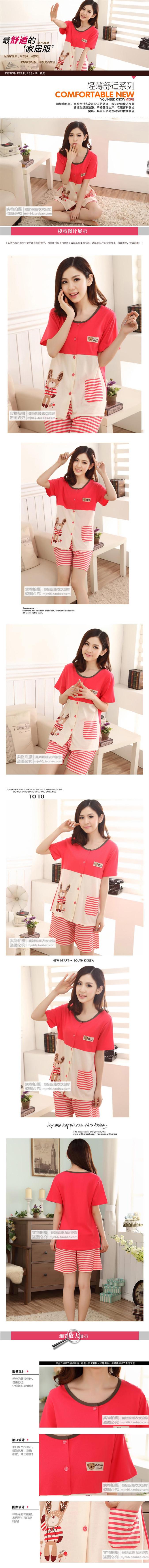 卡通可爱前扣女生大码夏款家居服