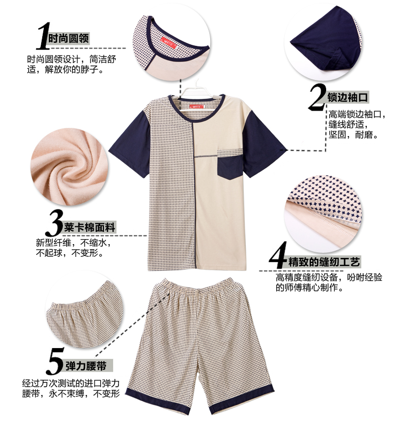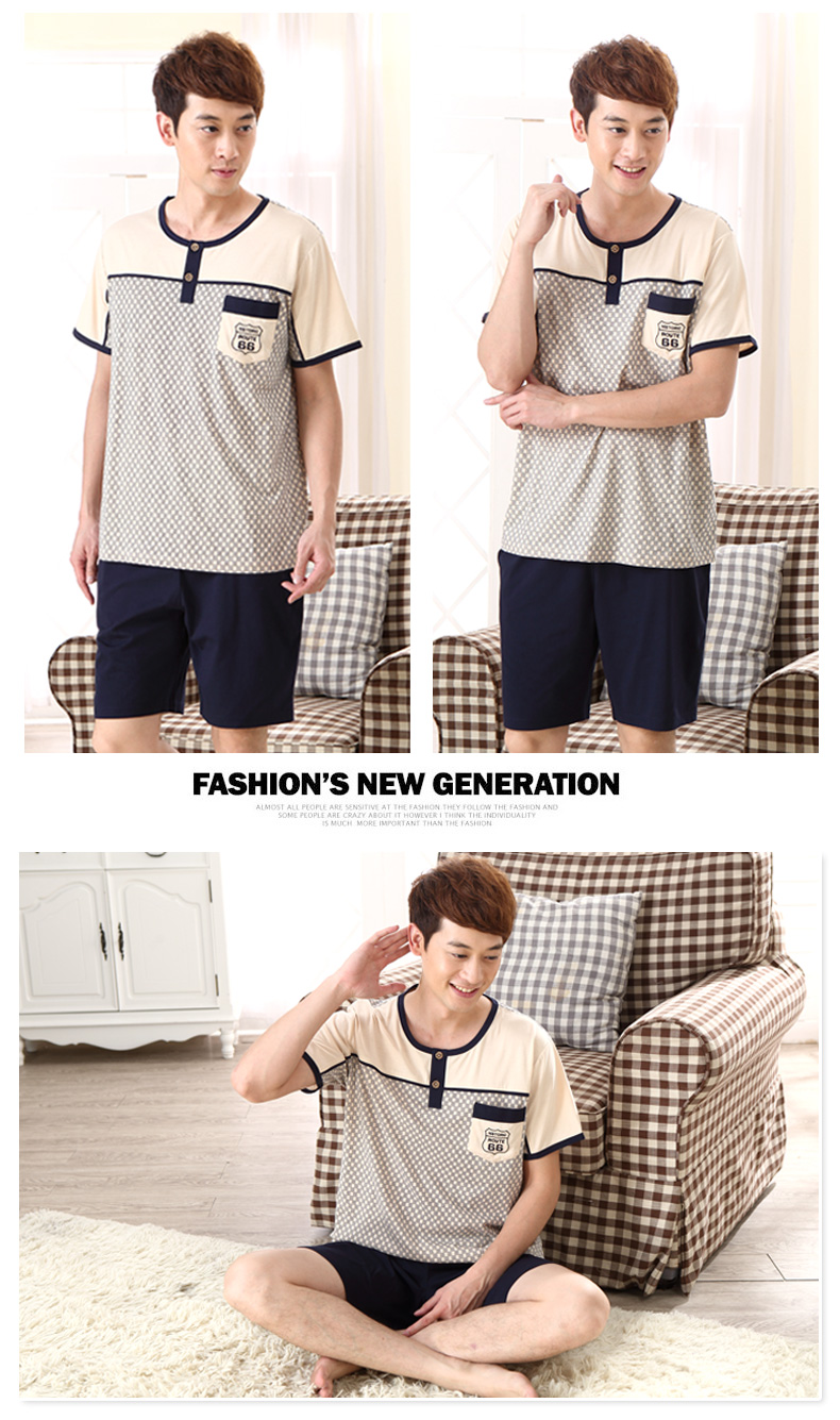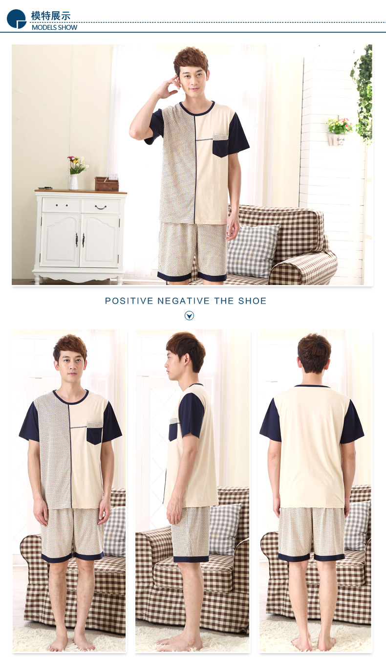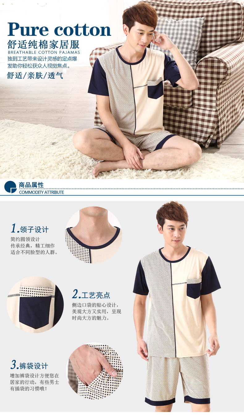 纯棉短袖短裤针织睡衣男时尚家居服夏款男加大码