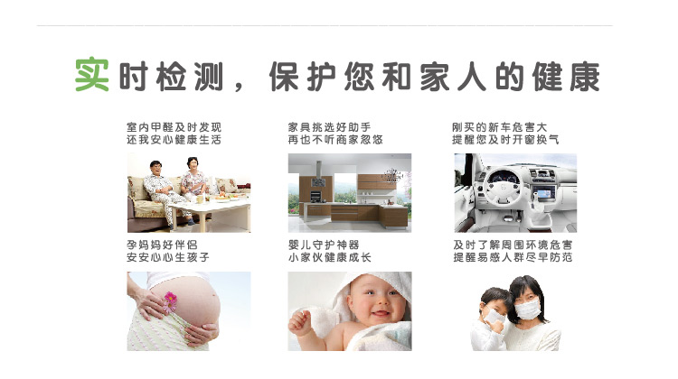 液晶屏幕直观显示 原装进口的高性能电化学传感器 甲醛即时监测 空气净化助手 空调智能伴侣 健康环境档案