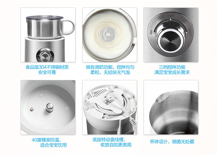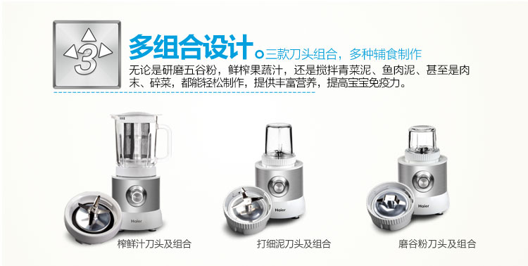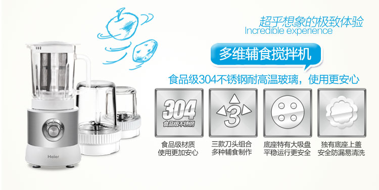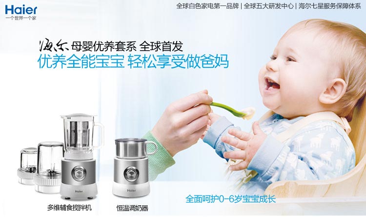 【专为0-6岁儿童量身设计,更人性、更科学】初为人父人母,总是想给宝贝世界上最好的爱,海尔全球首创母婴优养套系,多维辅食搅拌机采用食品级304不锈钢材质,安全可靠。多刀头设计、独有安全保护设计、全方位健康轻松享!恒温调奶器采用食品级不锈钢代替传统塑料材质,调奶无异味,首创恒温调奶,便捷更安心。
